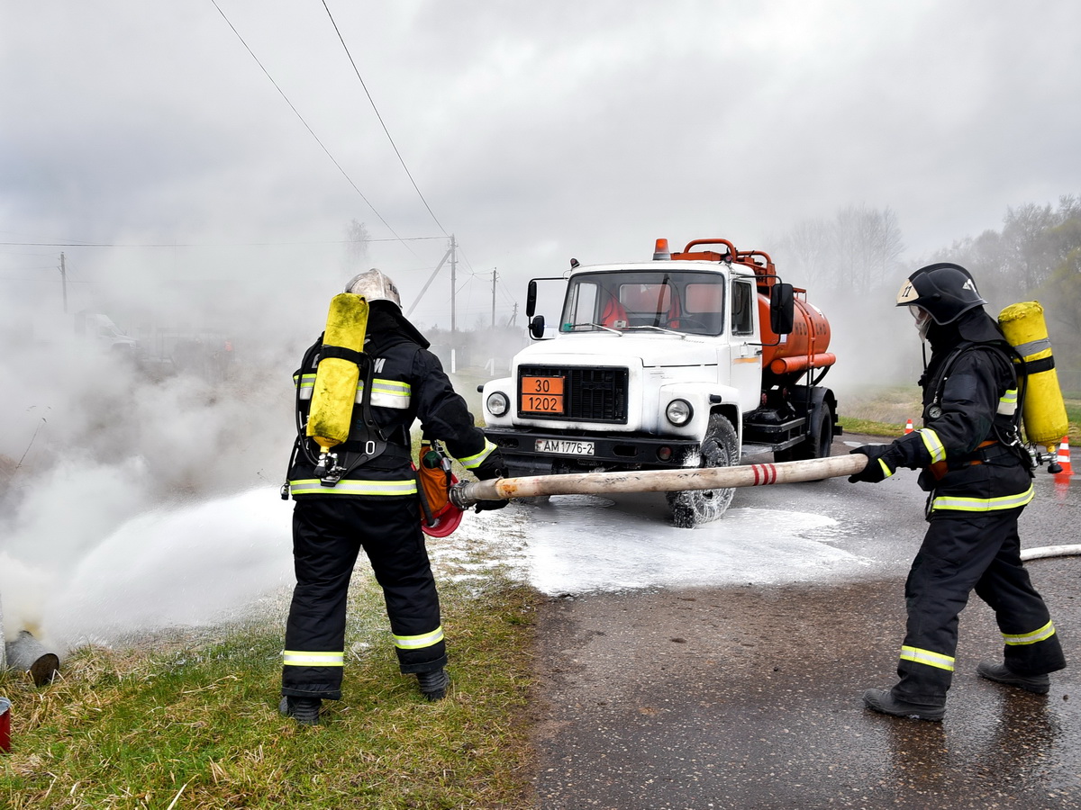 По легенде учений водитель топливозаправщика, двигаясь по территории, не справился с управлением и совершил наезд на опору действующей линии электропередачи. В результате произошёл обрыв провода, который упал на кабину автомобиля. Ситуация осложнилась возгоранием техники и разливом топлива из цистерны.