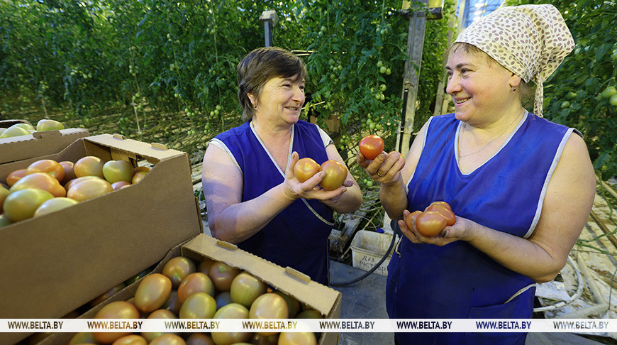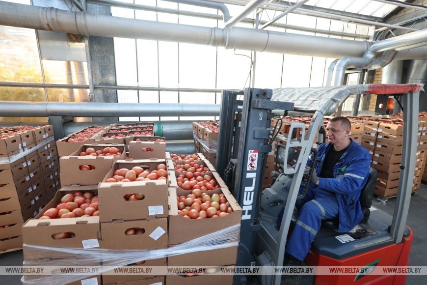 Юрий Ахраменок поясняет, почему плоды собирают еще не полностью покрасневшими. "На складе они дозревают за два-три дня, летом - за день. Это помогает сохранить товарный вид овощей и никак не влияет на их питательность и витаминную ценность", - отмечает он.