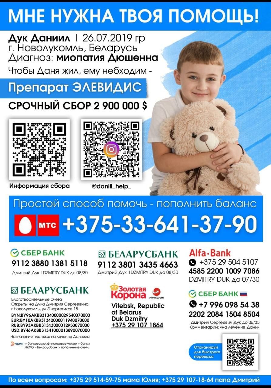 Но надежда есть! Единственный в мире препарат – Элевидис – способен остановить течение болезни. Но его стоимость неподъемна для обычной семьи – 2 900 000 долларов США.