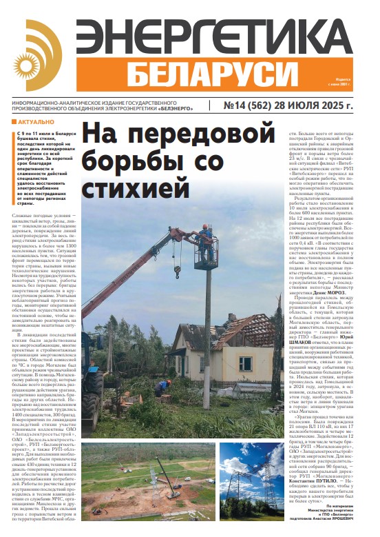 Газета «Энергетика Беларуси» №14 (562) 28 июля 2025г.